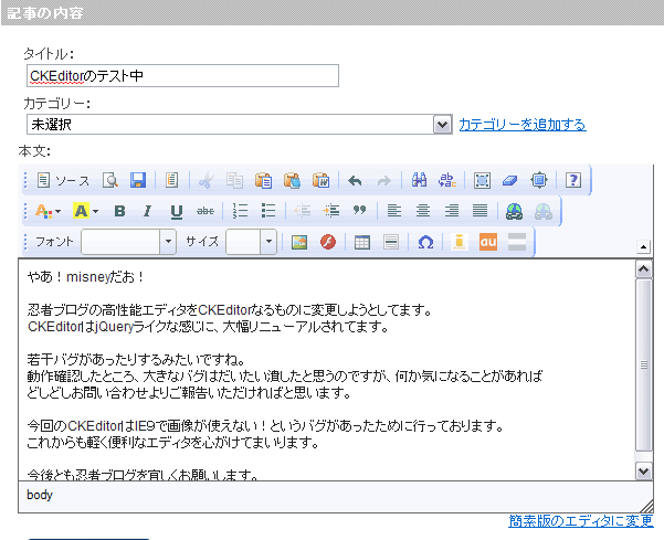 忍者ブログの高性能エディタを変更するプロジェクトをやってます。